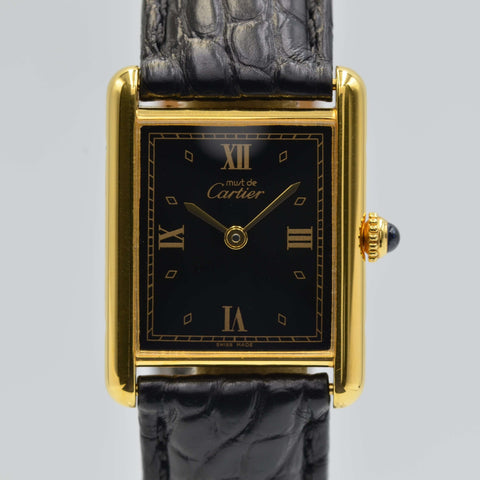本日入荷した「カルティエ・マストタンク」はカルティエでは珍しいブラック文字盤。