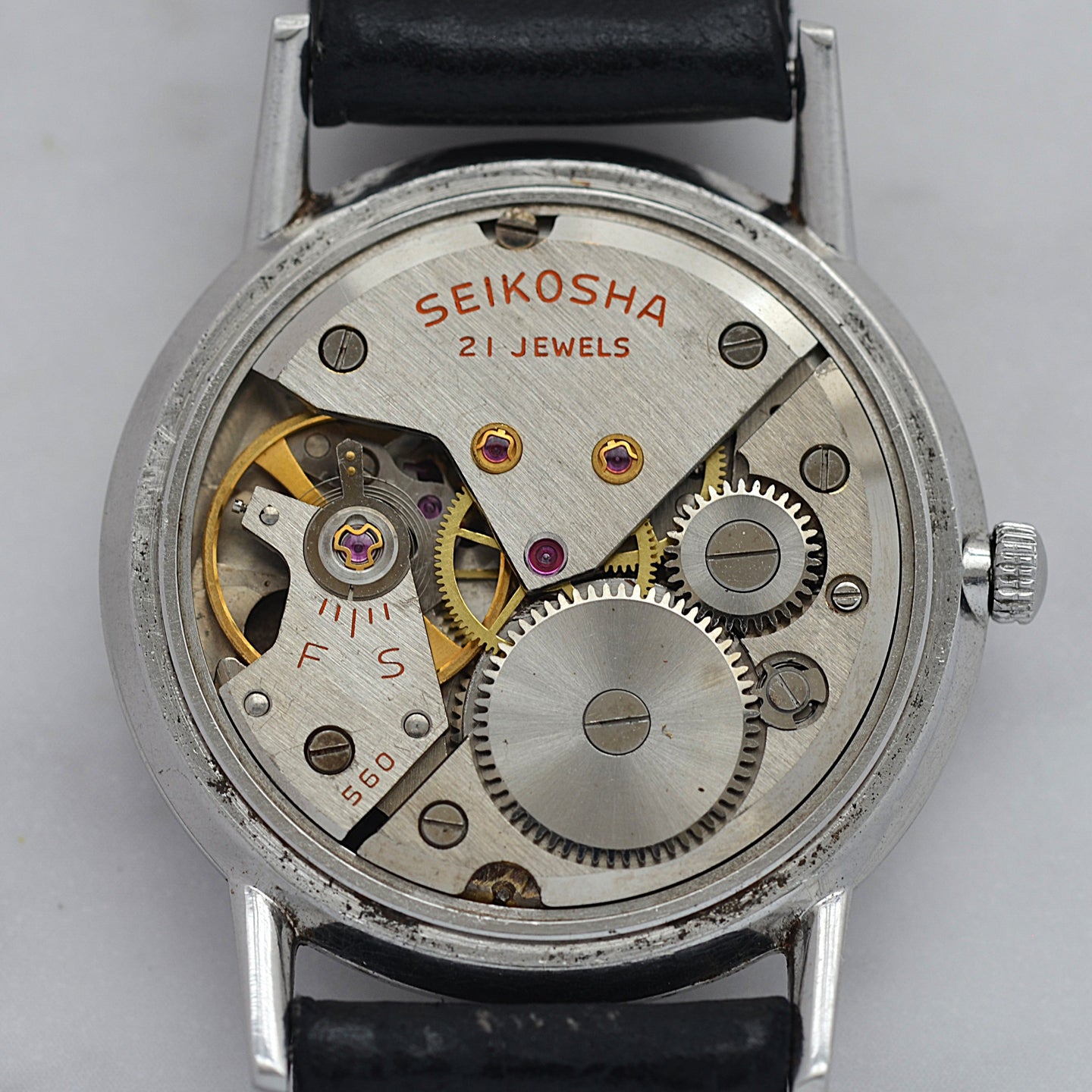 セイコーの純正カーフストラップ(ヴィンテージ品)、純正尾錠が付属します。