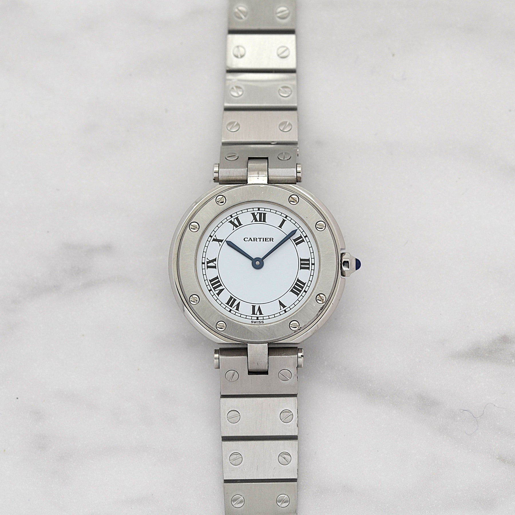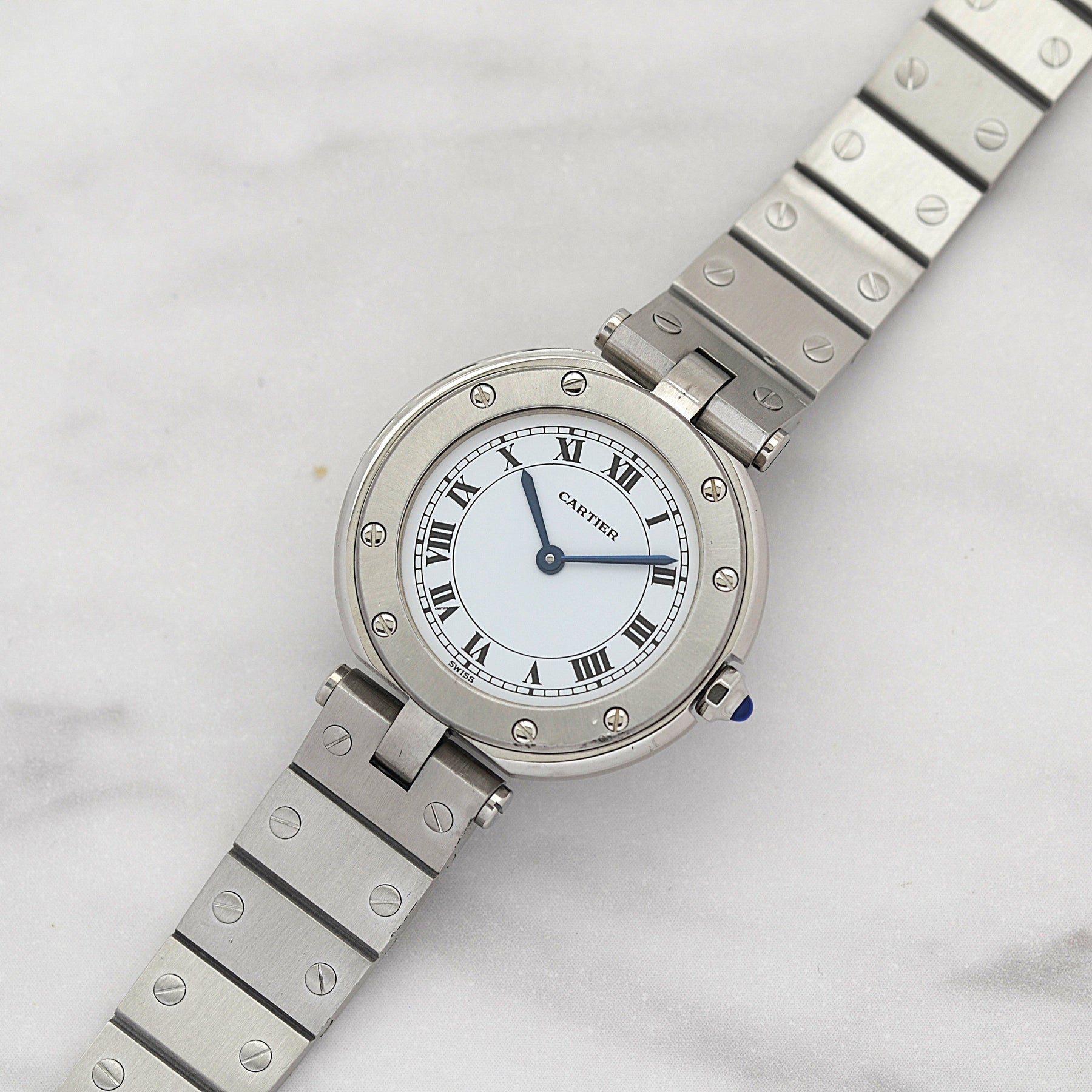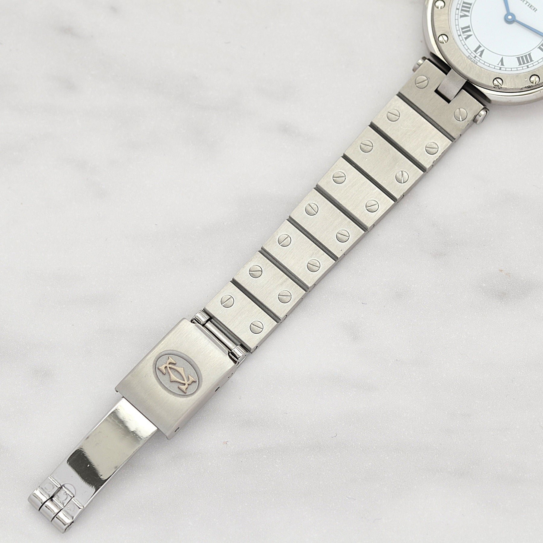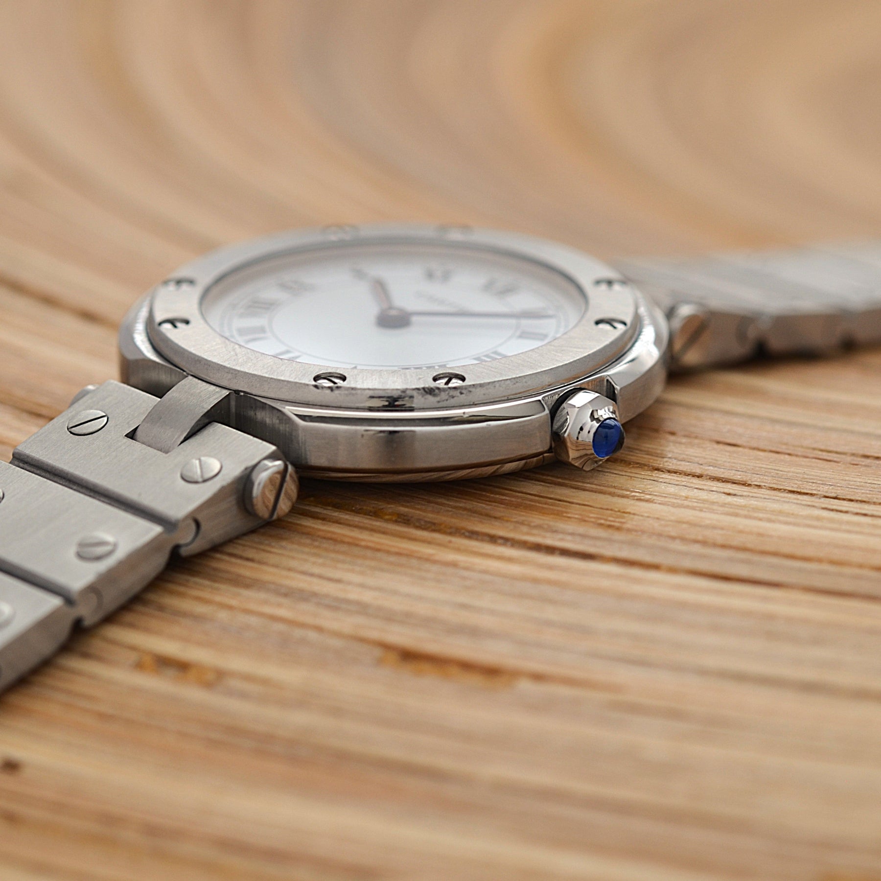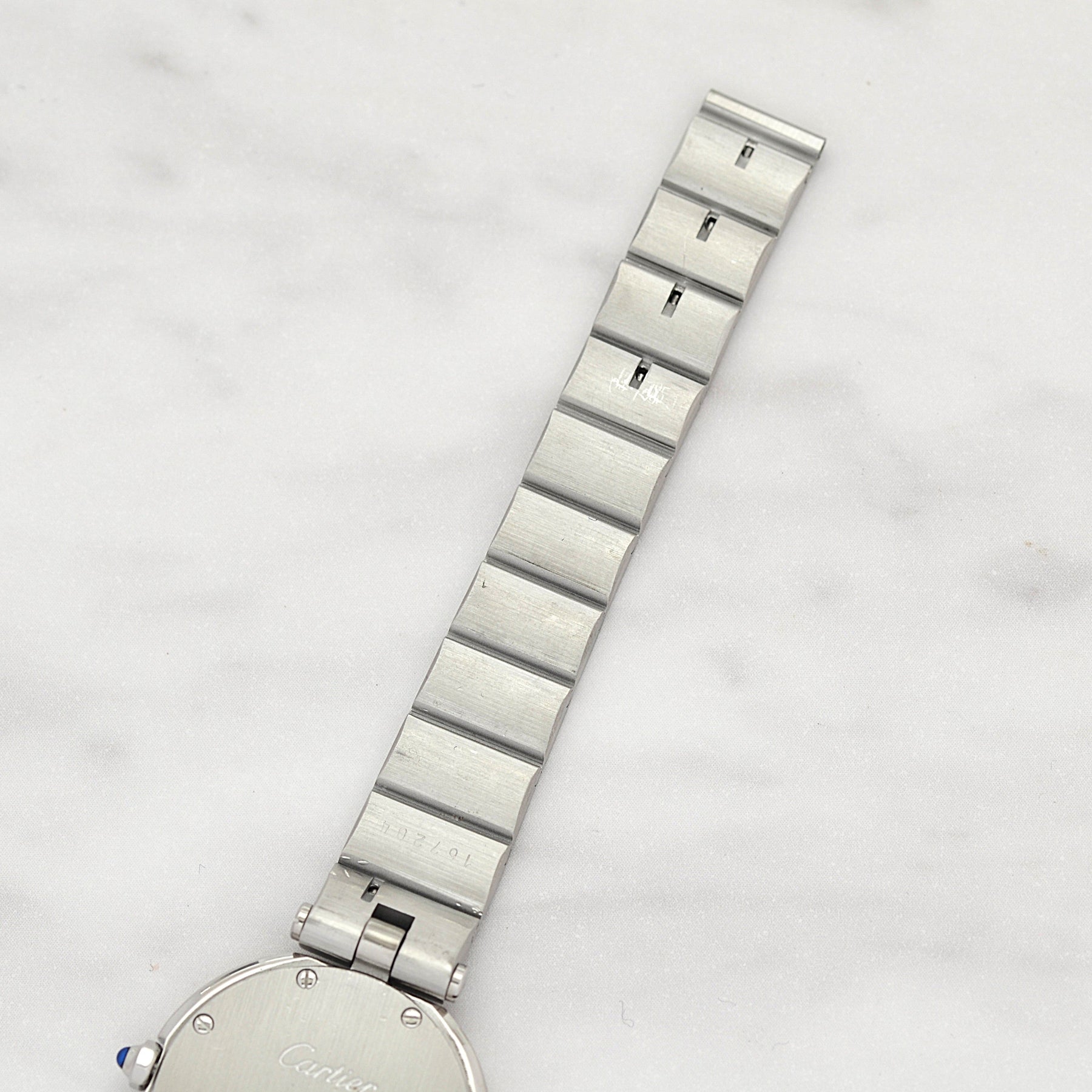 カルティエにてコンプリートサービス、針、リューズ、ベゼルネジ8本、裏蓋ネジ8本、ブレスネジ、プレスピン、バネ棒交換(2025.10)済み。