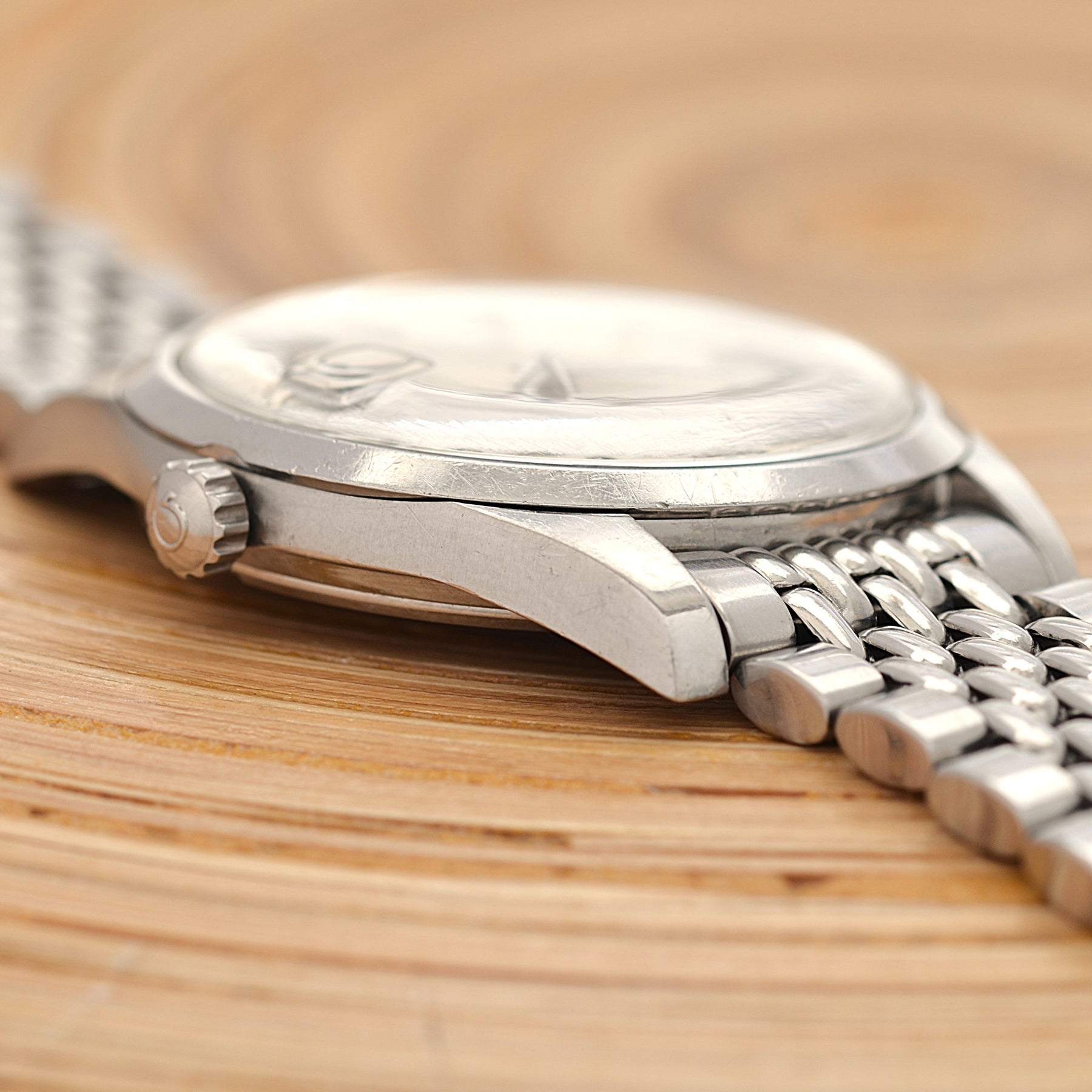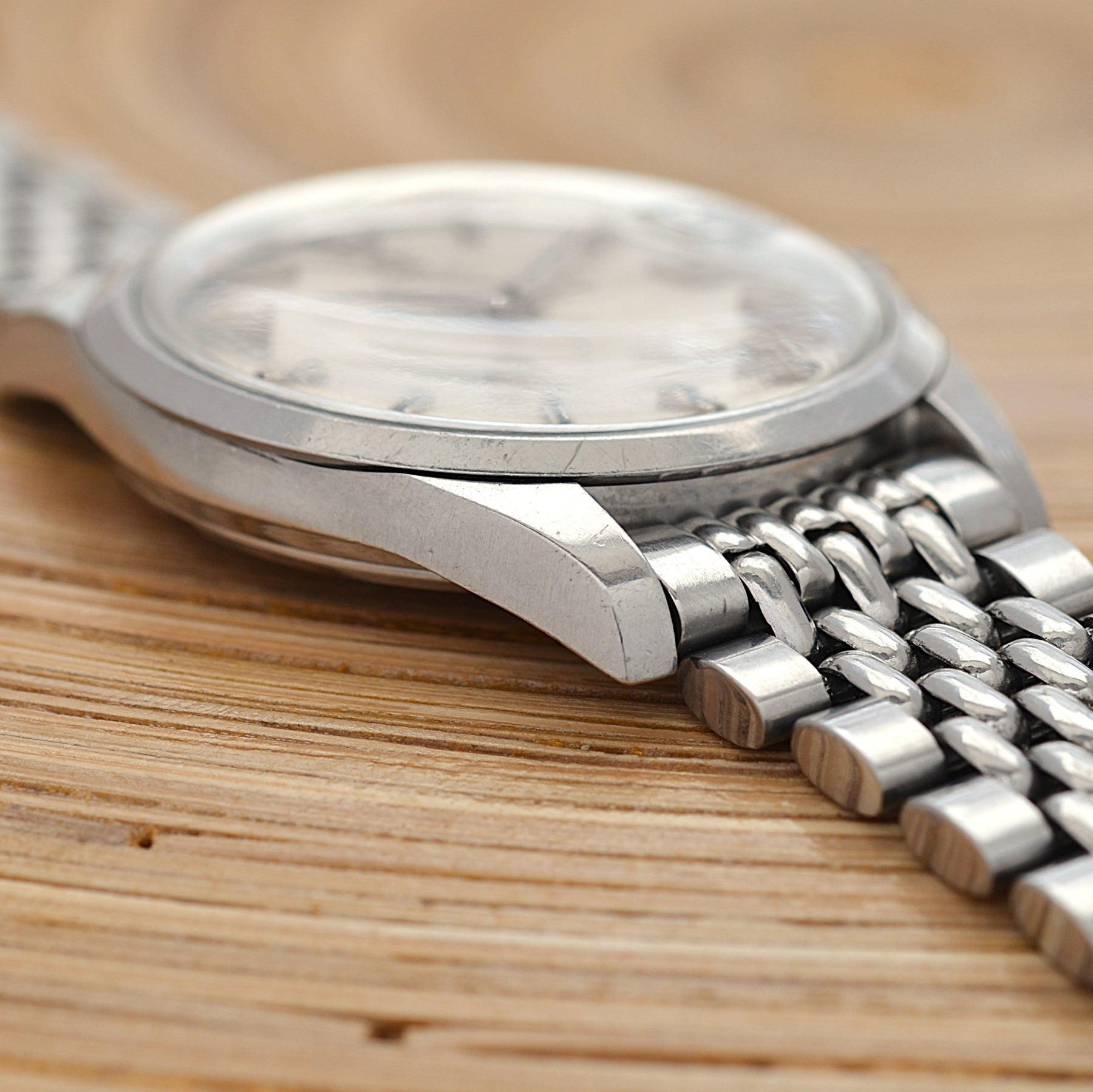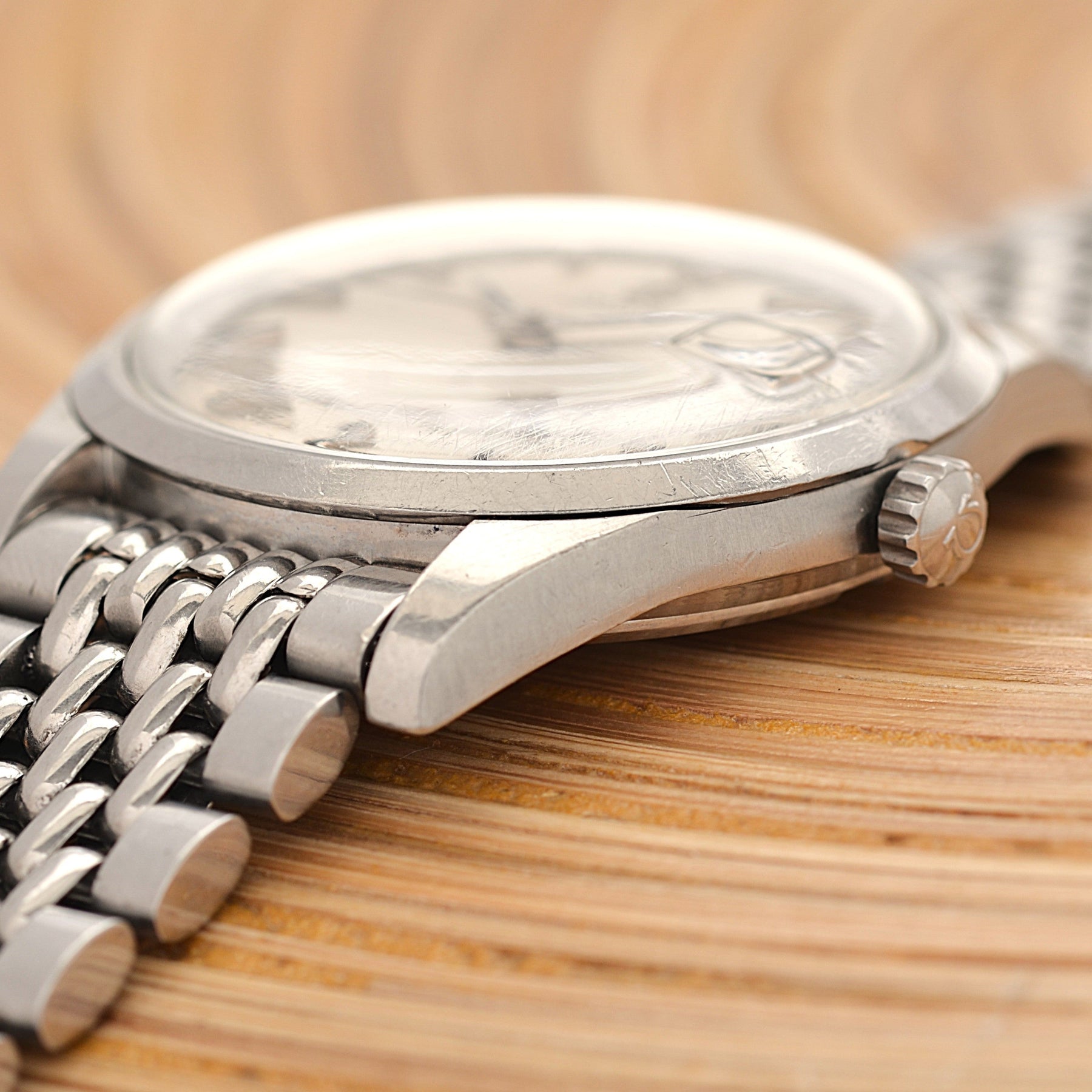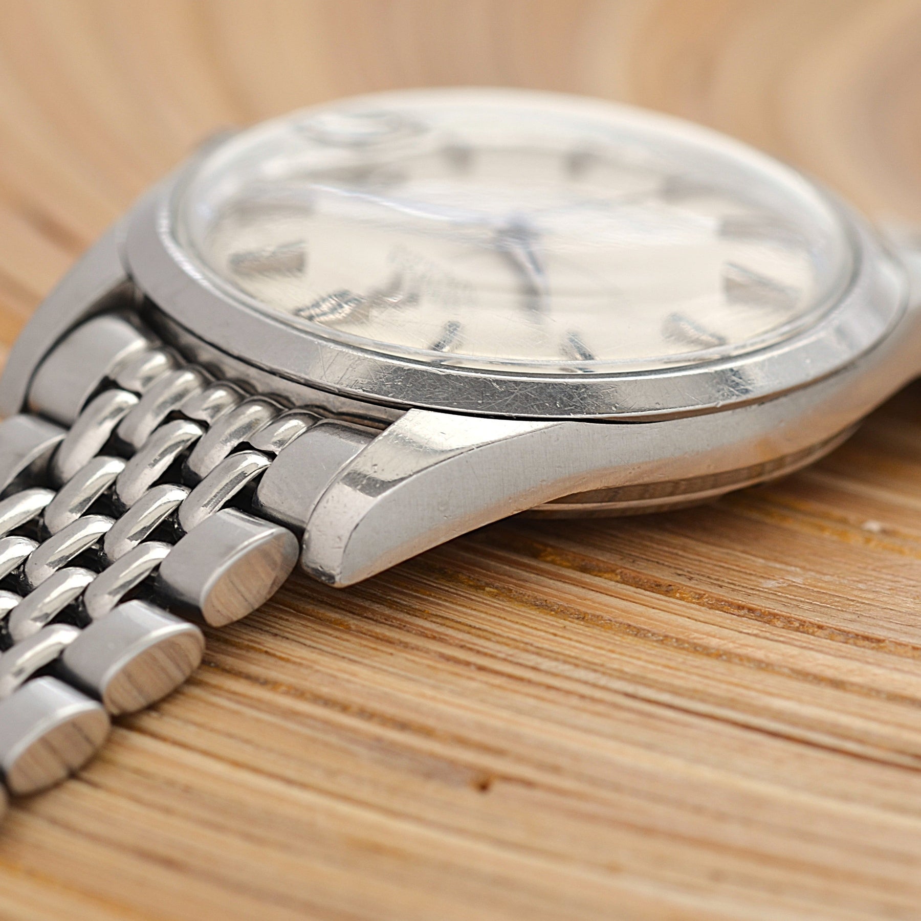 Case This watch has a non-polished case and has small scratches due to aging.
