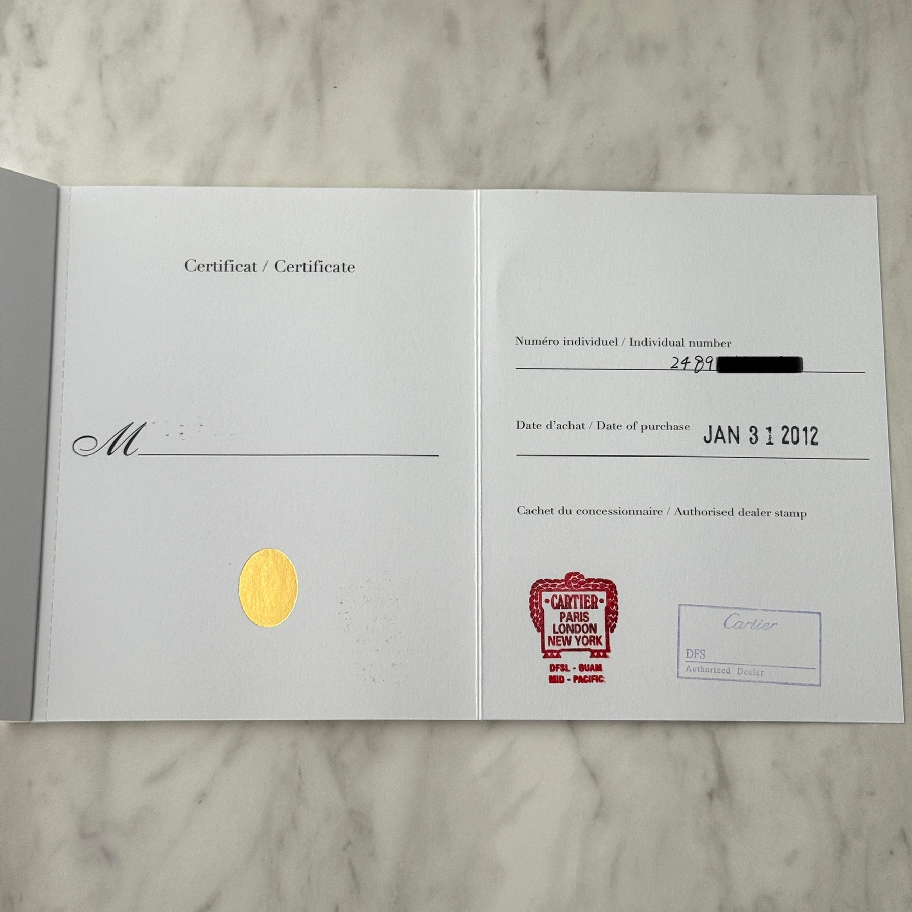 カルティエの修理明細書に記載の日付より24か月間、カルティエブティックにて自然故障における 修理保証が受けられます。